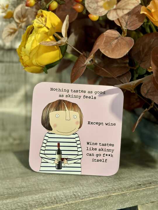 Everybody’s favourite Rosie Made A Thing humorous cork backed coaster 'Nothing tastes as good as skinny feels, except wine, wine tastes like skinny can go f**k itself ' Size: 10cms x 10cms